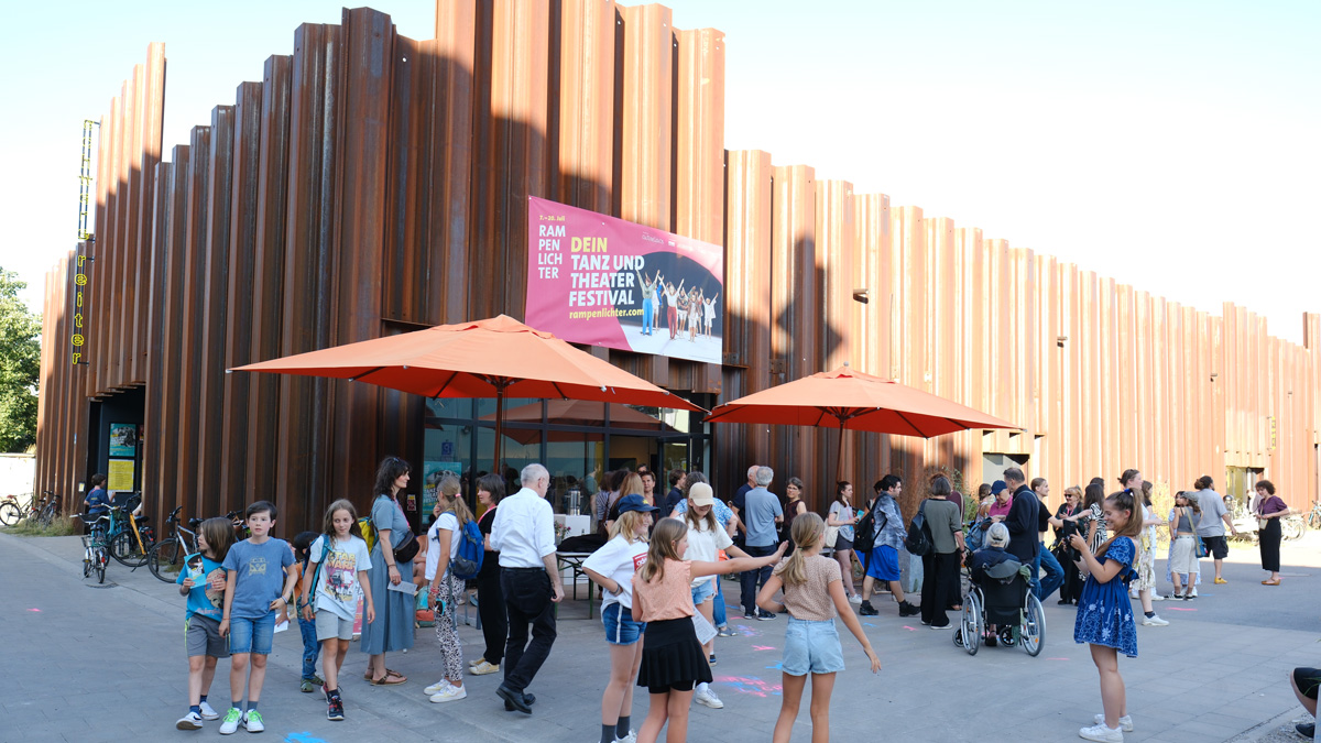 Mit großartigen Stücken, „Frei-Räumen“ zum Verweilen, Tanzpartys und Lagerfeuerabenden, kleinen und großen Oasen und einer tänzerischen Invasion wurde München bunter und lauter und das Kreativquartier lebendig. Das für alle offene Foyer lud ab nachmittags zum Dasein ein und zeigte in einer Ausstellung Perspektiven auf die Produktionen und Gruppen aus München, ganz Deutschland, der Schweiz, Italien und Nigeria. Lange bevor der Vorhang fiel, war eine Soundcollage zu den Stücken zu hören, eines der zahlreichen Projekte des Jugendteams. Eine Beteiligungswand zum Mitmachen stand bereit und spannte den Bogen zur Zukunftswerkstatt – denn die großen und kleinen Fragen schieben uns immer weiter an und wir nehmen sie mit in den Juli 2025, mit ins nächste Festival. So viel ist gesagt, getanzt und gedacht, und doch so viel offen – deshalb brennen wir darauf, schon wieder ab 2024 das vierzehnte Rampenlichter Festival mit euch zu gestalten!